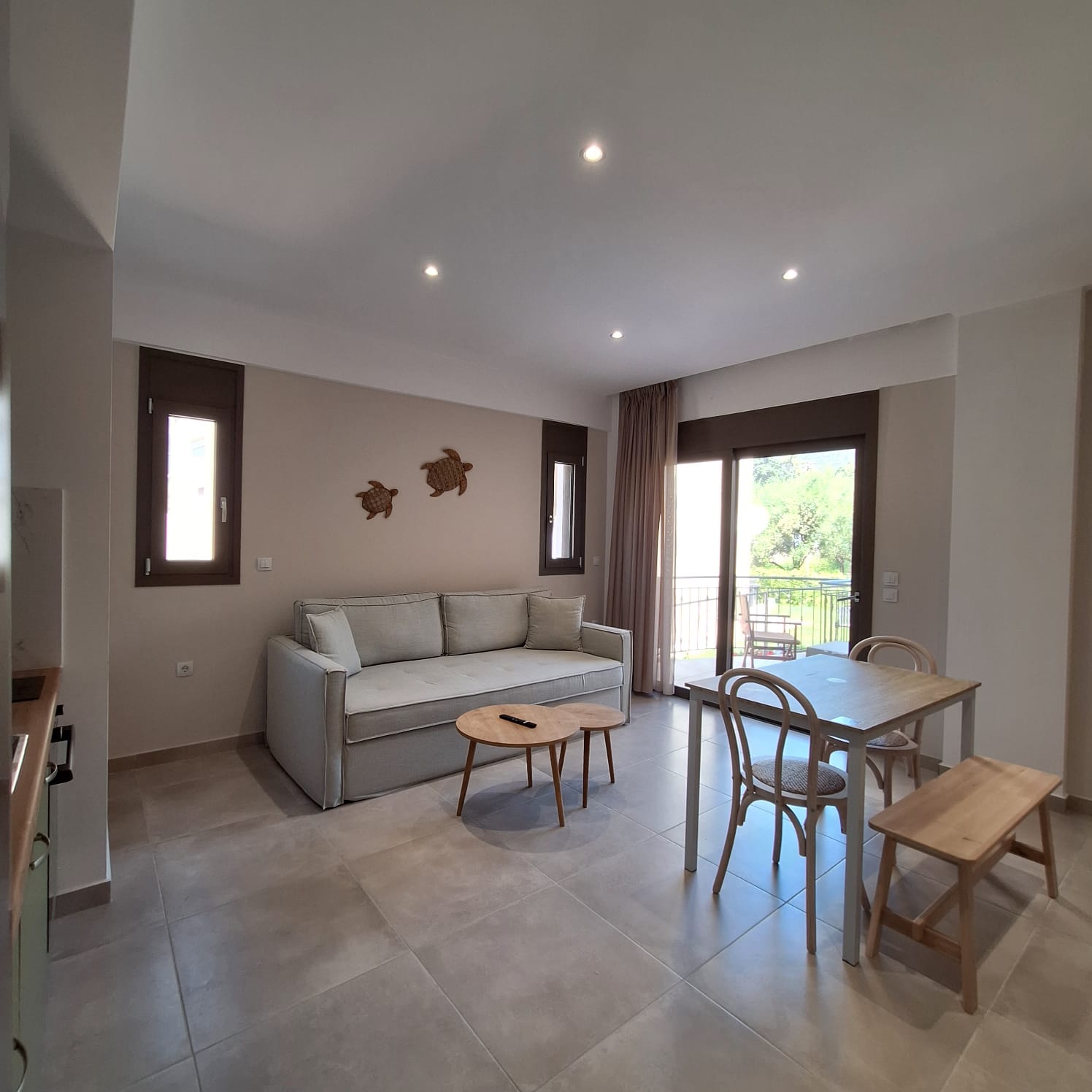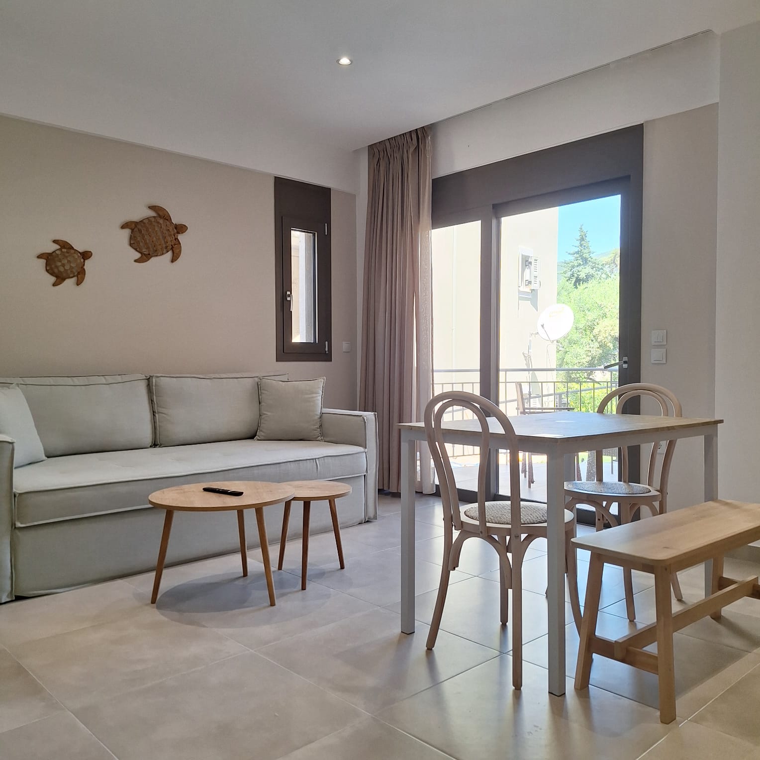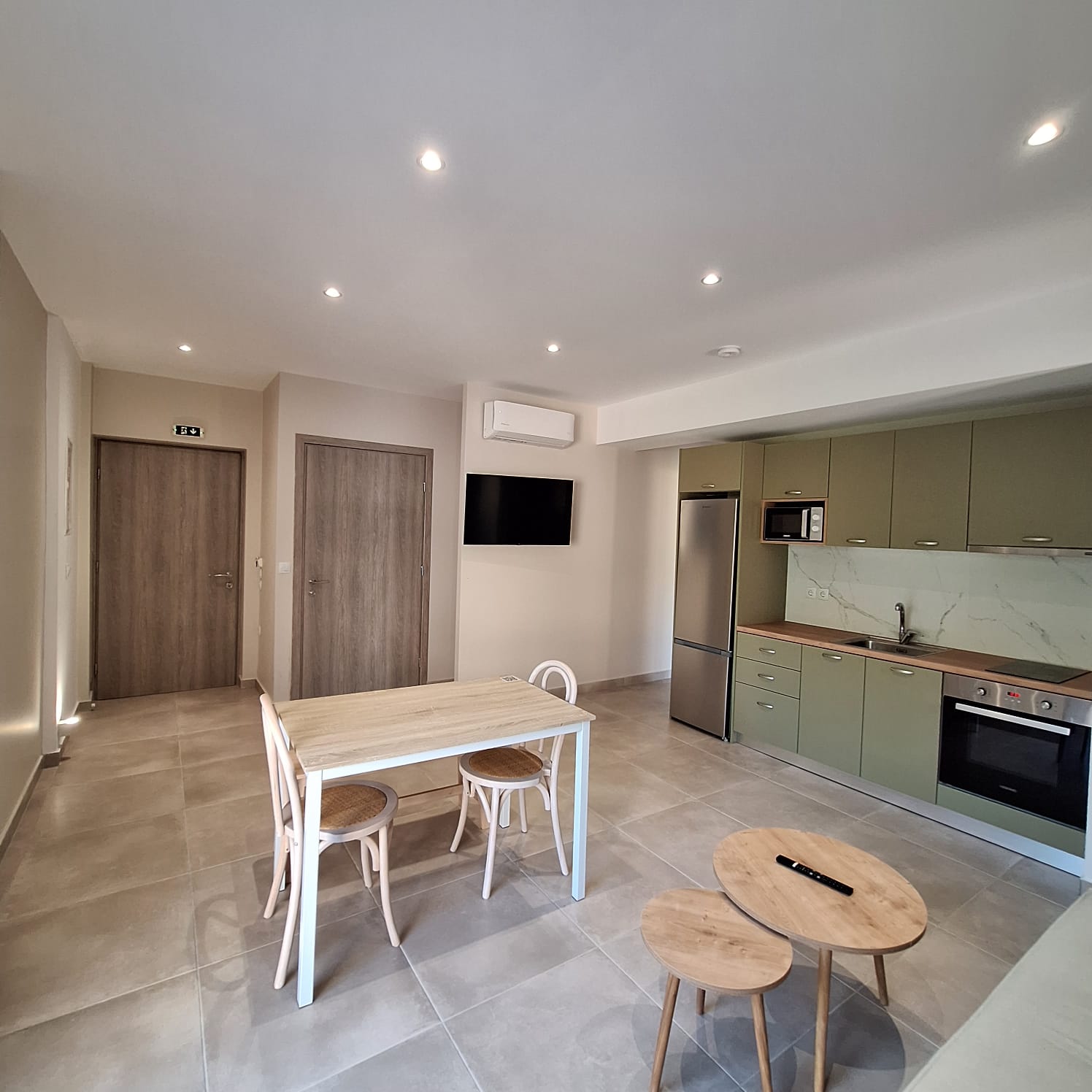 Step into our modern suite, thoughtfully designed to offer comfort, style, and convenience.This open-plan space features a fully equipped kitchen,  2 comfortable double bed, a sofa-bed, air conditioning, complimentary WiFi, and free private parking.