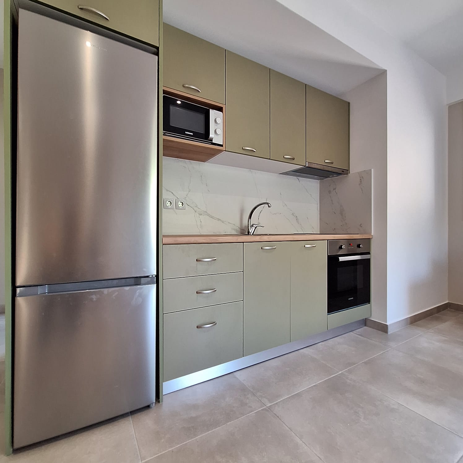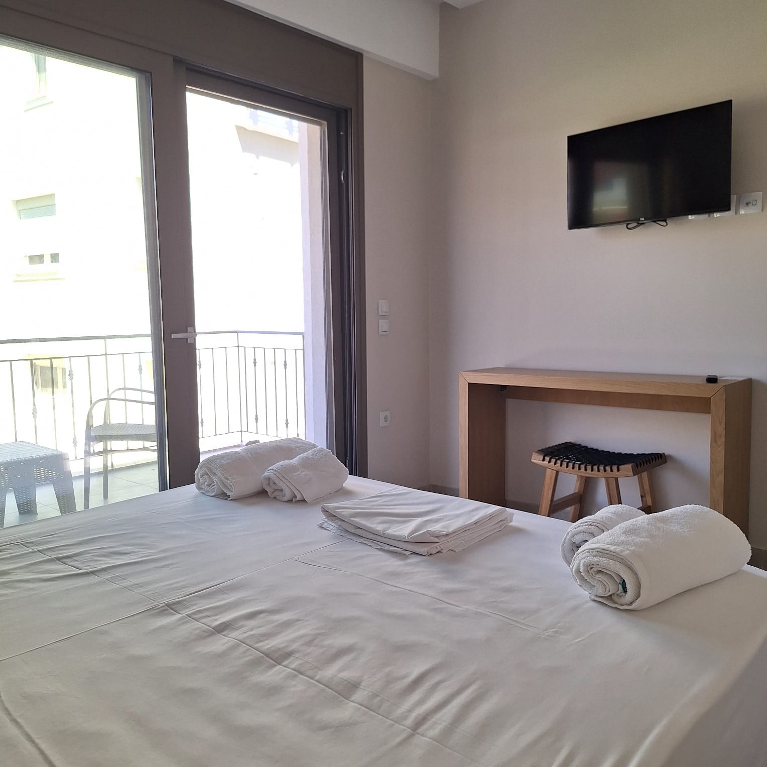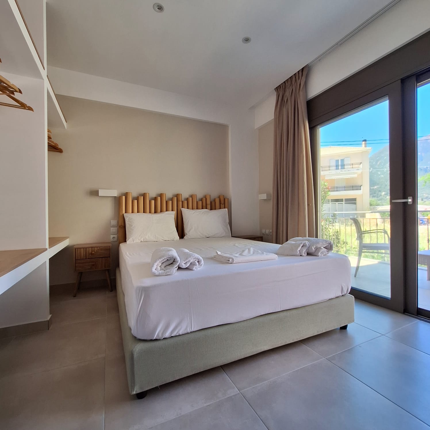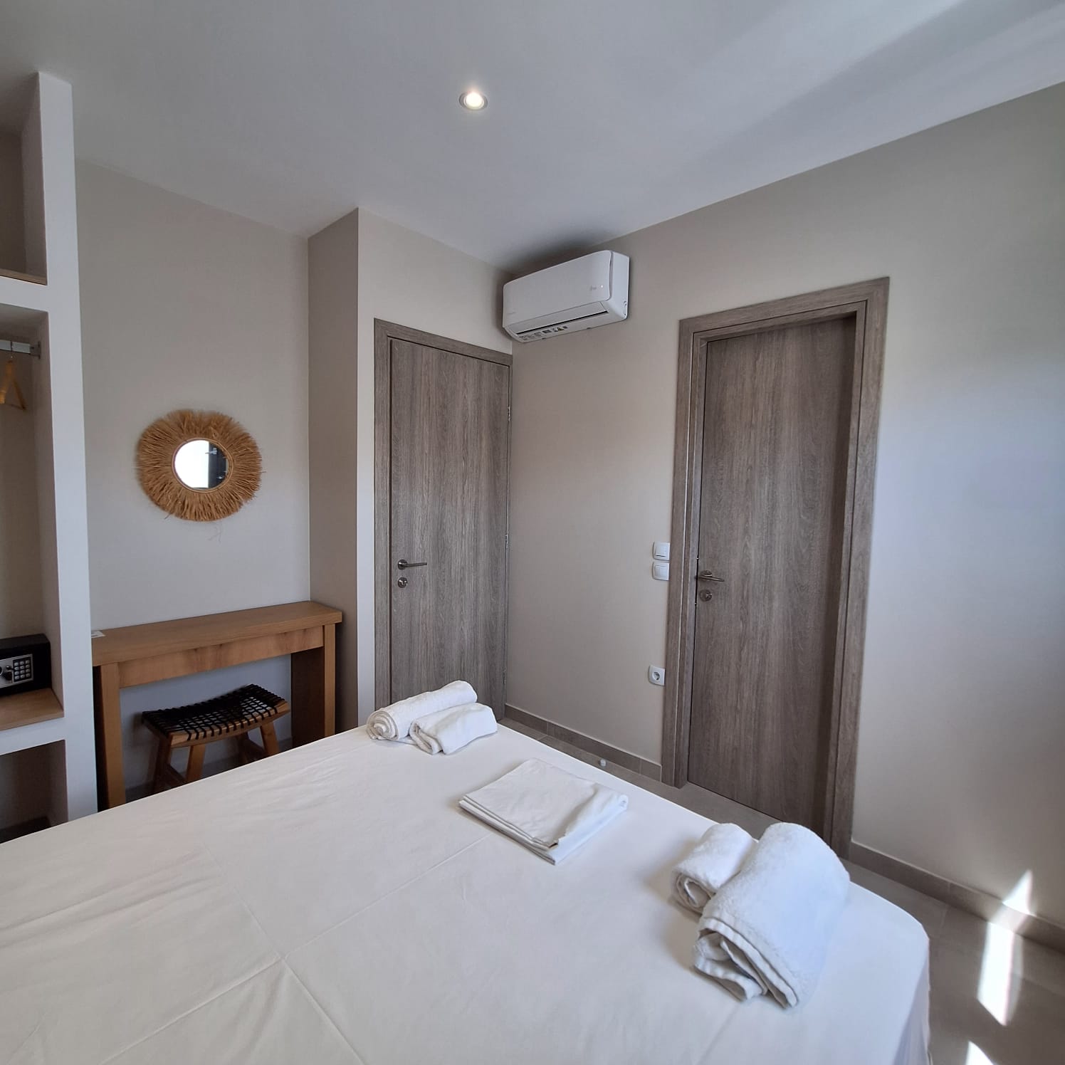Step into our modern suite, thoughtfully designed to offer comfort, style, and convenience.This open-plan space features a fully equipped kitchen,  2 comfortable double bed, a sofa-bed, air conditioning, complimentary WiFi, and free private parking.